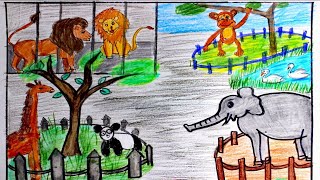رسم حديقة الحيوان سهل خطوة بخطوة بالالوان الخشبيه Youtube